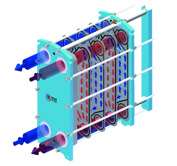 2、對數(shù)平均溫差大:流體在板式換熱器內(nèi)的流動是并流或逆流的流動方式,其溫差修正系數(shù)一般在0.8~0.95。